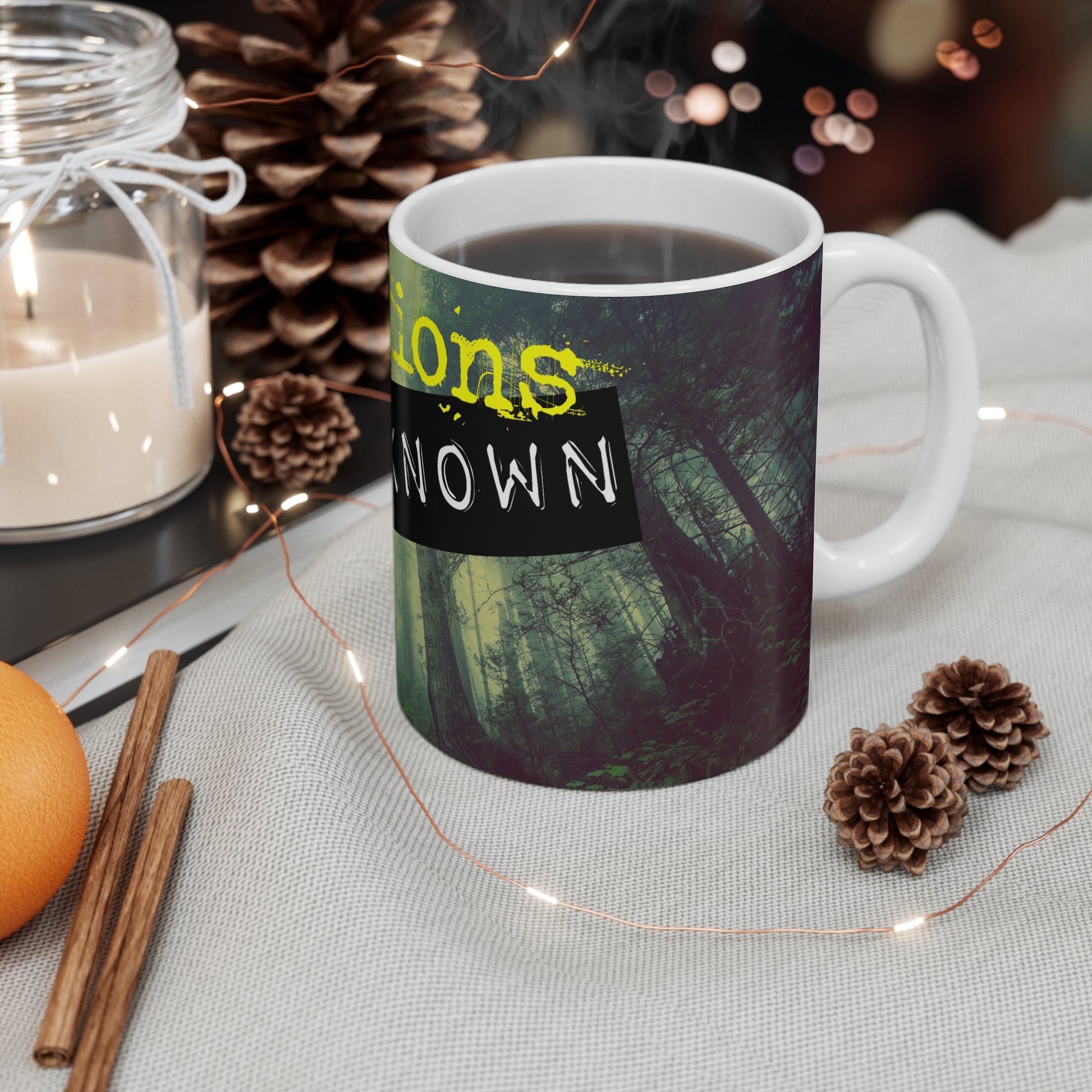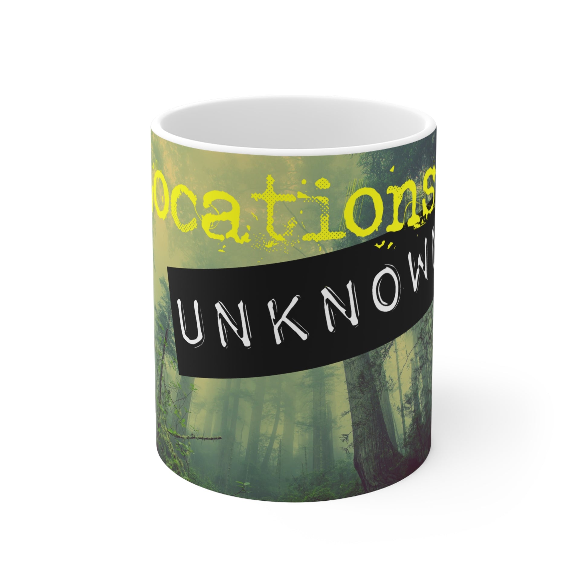 Stay caffeinated while listening to your favorite podcasts with this 11oz ceramic mug featuring the Locations Unknown Podcast Logo. Perfect for cozy mornings and late-night binge-listening sessions. Ideal for podcast enthusiasts and coffee lovers alike. Great for gifting on birthdays, holidays, and special occasions.